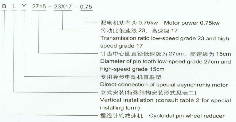 BLY擺線針輪減速機為法蘭式、專用異步電動機直聯型、立式安裝;
