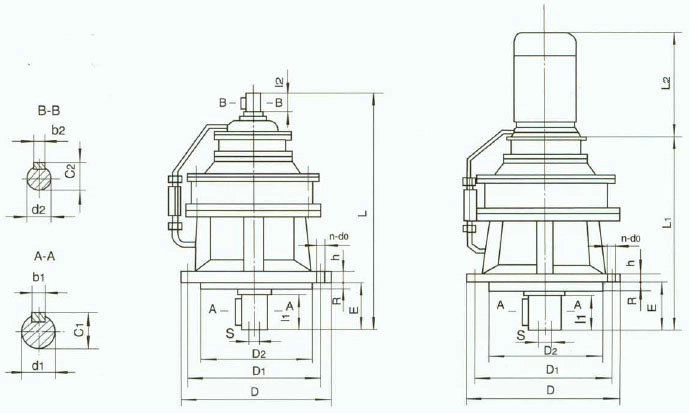 BL擺線針輪減速機為法蘭式、雙軸型、立式安裝;