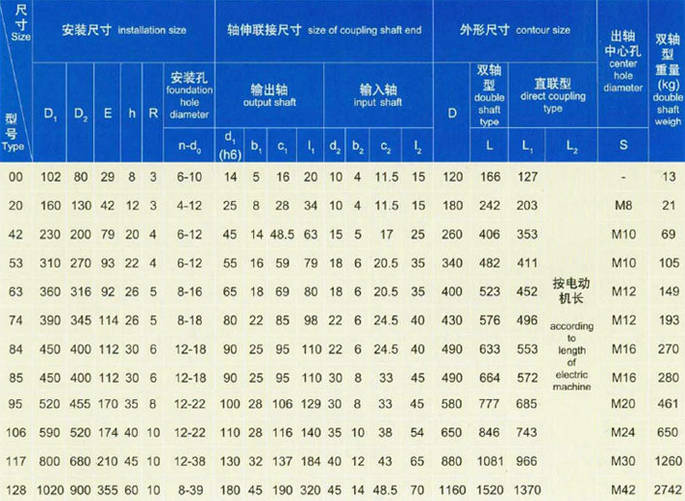 凡單級可提供的傳動比,雙級均可組合,若需表中未列出的傳動比,可與我廠聯系。